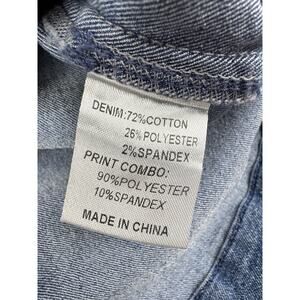 • Denim: 72% Cotton, 26% Polyester, 2% Spandex