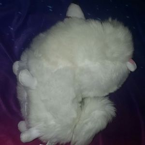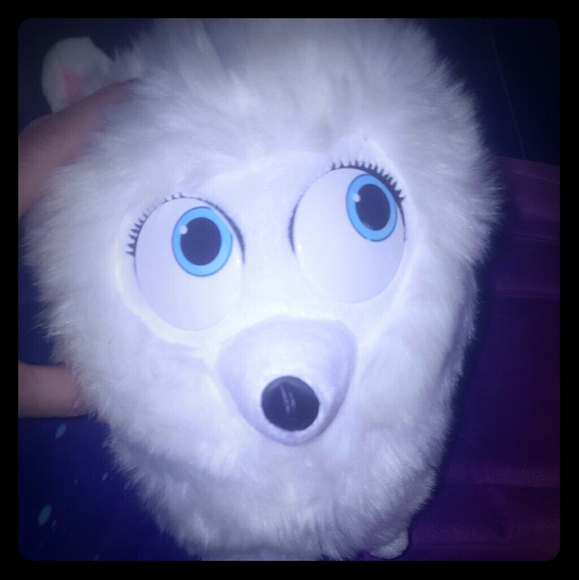 Secret life of pets talking Gidget animal. Works fine. I see a spot in pics, will be washing that but more noticeable in pic then in person. Price reflects possibility of slight discoloration in that spot. (Think its coffee that dripped on it) Update: the discoloration did wash out! I just already packaged and forgot to take new pics