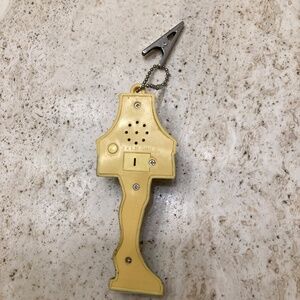 Talking Leg Lamp Keychain Or Ornament - A Christmas Story Collectible. Add a festive and nostalgic touch to your collection with this Talking Leg Lamp Keychain or Use as Ornament. Inspired by the beloved holiday classic A Christmas Story. The keychain includes a detachable keyring or Clip to hang and a built-in sound feature (note: batteries need replacing). Made of durable plastic and finished in a gold-tone color, the keychain perfectly replicates the film's memorable lamp design. A must-have for fans, collectors, or anyone who loves quirky holiday decor! Preowned. Shows some signs of wear marks, scratches, scuffs, discoloration, etc. See pictures.