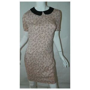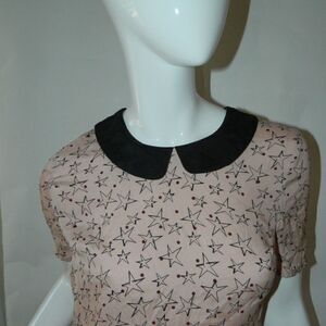 Talking French Dress Pink Stars 100% Silk Peter Pan Collar Dress Size Small