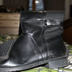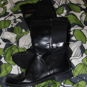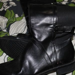 Size 10 Black boot side zipper, extremely comfortable, the material breaths and adjusts nicely to leg.