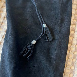 Tall Black Suede Boots Size 8.5M, over the knee, black tassels, zippered sides, only worn a few times.