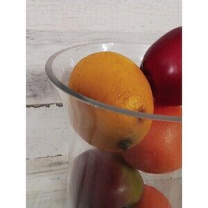 This product is a tall clear glass vase with a decorative element of fruit included. The vase is made of glass and features a transparent color, allowing the beauty of the fruit to showcase through the material. Perfect for adding a touch of elegance and uniqueness to any space, this vase is a stylish and functional decorative piece for collectors or those looking to enhance their home decor with a eye-catching display.