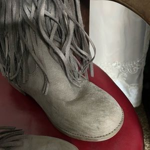 Tall Gray Ruffle Boots
