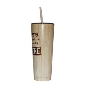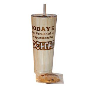 ✔ TODAY'S Best Version of Me is Sponsored by COFFEE - this Double-Walled Stainless Steel Vacuum Tumbler with Silicone Lid and Straw will become your favorite cold beverage holder for sipping on the go. The wood grain dye tumbler holds 25 ounces and is made to last through everyday wear and tear. The double-wall construction and vacuum insulation keep cold drinks cold for hours and prevent condensation from forming. It has a plastic lid with a silicone ring that helps eliminate splashes and spills when you're in the car or on a walk, and the reusable straw adds even more convenience.