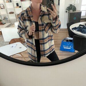 Tall Orange Brushed Plaid Wool Mix Shacket