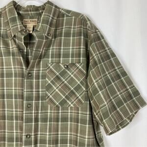 Tall Pines by Woolrich | Green Plaid 100% Cotton Short Sleeve Button Up Shirt L