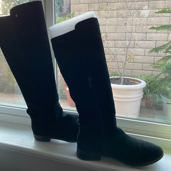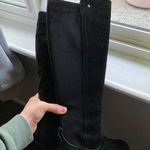 Tall Suede Leather Boots - Black