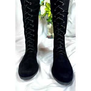 Tall Talk Flat Lace Up Over the Knee Boot - Black 10