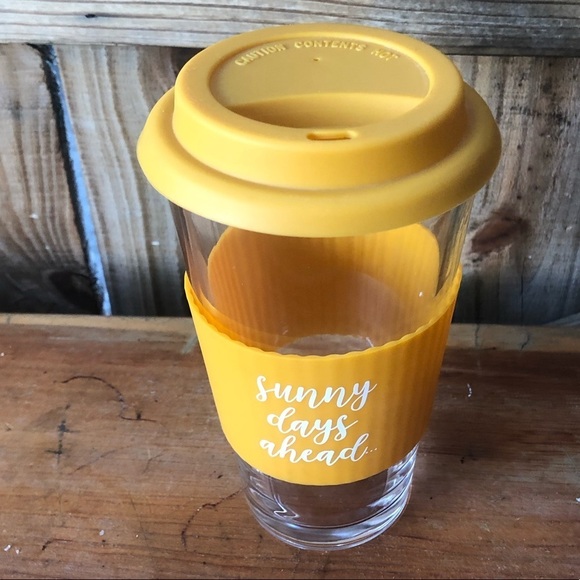 Tall Travel Glass Tumbler with Orange Silicone Lid & Sleeve Sunny Days Ahead.