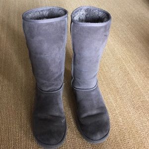 Gently used silver-gray ugg boot. I recently moved to Santa Barbara so these don't get as much love as they should! They're in need of a new home with a bit colder of a climate:)