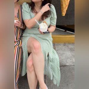 Tall cupped maxi dress with splits slits in brown spot polka dot or sage green