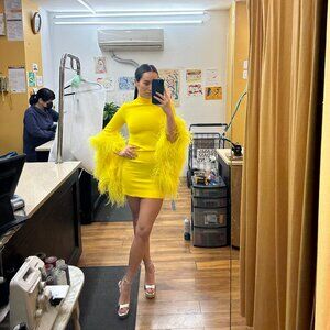 Taller Mamo Canary Yellow Dress w/ Feather Sleeves
