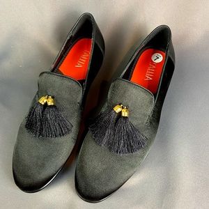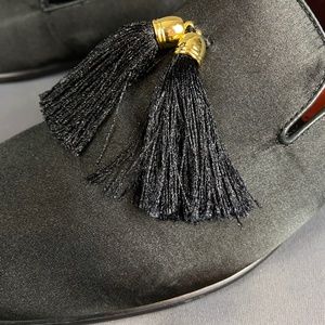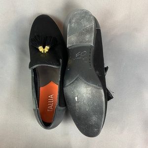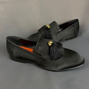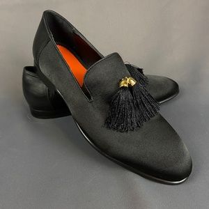 Tallia Eduardo Black Leather & Satin Tassel Loafer Slip on Shoes Size 7