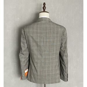 Tallia Men's 36 Short Suit Jacket Stretch Wool Blend Cream/Brown Plaid NEW