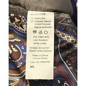This listing is for a new with tags Tallia Men's 36 Short Verdello Suit Jacket. Fully Lined, Two Button Closure, Two Front Flap Pockets, Welt Pocket at Chest, Notch Lapel, Side Vents, 4-Button Cuff, Natural Stretch Fabric, Wool Blend, Cream & Brown Plaid. 70% Wool, 30% Polyester, Dry Clean Only.