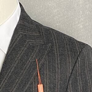 Tallia Men's 38 Short Suit Jacket Stretch Fabric Wool Charcoal/Brown Stripe NEW