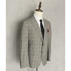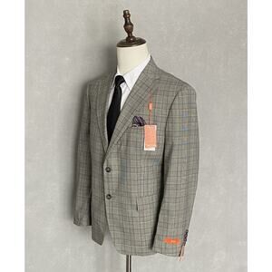 Tallia Men's 42 Long Suit Jacket Stretch Wool Blend Cream/Brown Plaid NEW