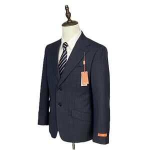 This listing is for a new with tags Tallia Men's 44 Short Venezia Blazer in Navy and Brown. Stretch Fabric, Lined, Two Button Closure, Three Front Flap Pockets, Welt Pocket at Chest, Notch Lapel, Side Vents, 4-Button Cuff. 70% Wool, 30% Natural Stretch Polyester. Dry Clean Only.