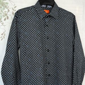 Tallia Mens Blue Starburst Collard Button Up Dress Up Shirt Sz. Medium M 15 1/2