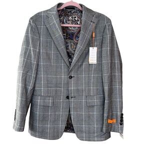Tallia Men's Gray Plaid Slim-Fit Long-Sleeve Button-Front Suit Jacket Size 36R NWT