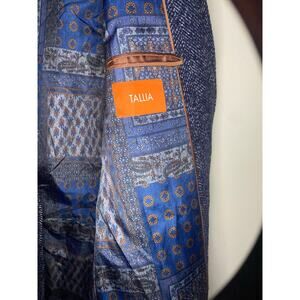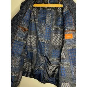 Tallia Mens Herringbone Navy Tweed Overcoat Tall Lined