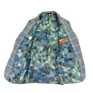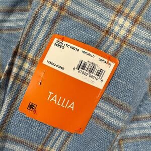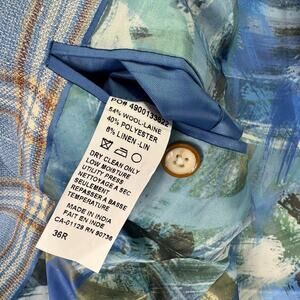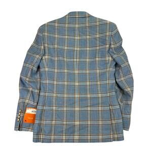 Tallia Mens Slim Fit Wool Blend Plaid Sport Coat Blue Gold 36R