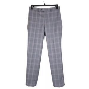 Tallia Men's Slim-Fit Stretch Wool Suit Pants Grey/Pink Plaid 30x30 NWT