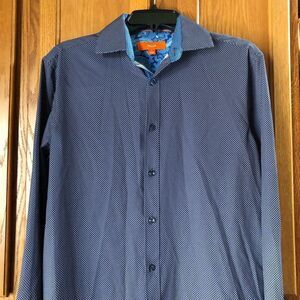 Tallia Navy Blue & White Polka Dot Button Front Paisley Flip Cuff Shirt - S