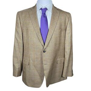 Tallia Silk & Wool Sport Coat Men's 46R Light Brown Plaid Blazer Jacket