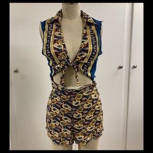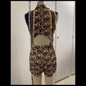 Tallow romper/1 piece. Ties in the front. Shorts have a zipper & hook. Size 2 (fits like a Sm) Like new condition!
