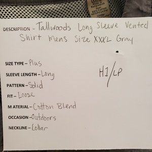 Tallwoods Long Sleeve Vented Shirt Men's Size XXL Gray (h1/LP)