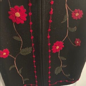 Tally Ho- Black and Red Floral Embroidered 100% Wool Vest