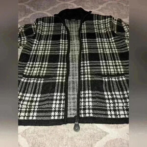 Tally Ho Black and White Plaid Zip-Up Jacket - Size Large