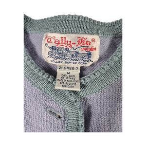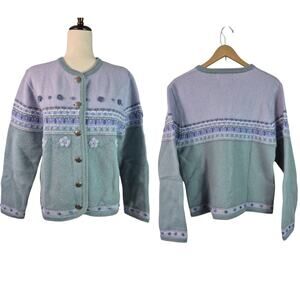 Tally Ho Lavender Green Floral Embroidered Vintage Wool Cardigan Sweater M