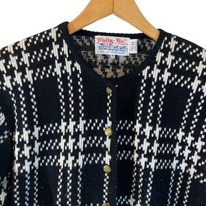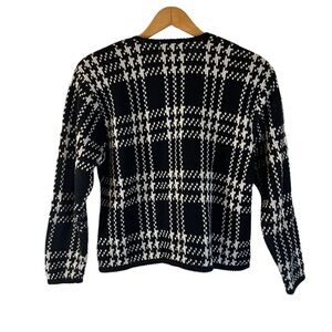 Tally Ho Vintage Black and White Houndstooth Cardigan Sweater Medium 80s Classic