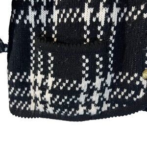 Tally Ho Vintage Black and White Houndstooth Cardigan Sweater Medium 80s Classic Plaid Pockets