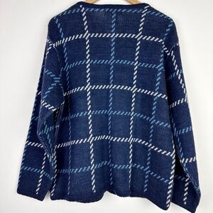 Tally Ho Vintage Navy Blue Checked Cardigan Sweater
