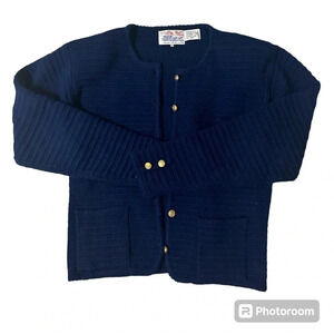 Tally Ho Vintage short cardigan sweater jacket blue w/ brass buttons, size M
