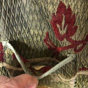 The Jacket is reversible and velvet on one side and a brocade print on the other; has pockets on both sides. Really nicely made