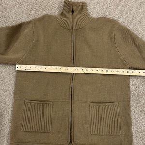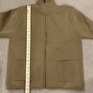 Tally Ho Women's Sweater Zipper Cardigan in Camel with 2 front pockets. In good used condition.