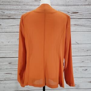 Tally Taylor Paris Rome - Women's Orange Beaded With Diamond Waffle Detail Single Hook and Loop Front Closure Long Sleeve Padded Blazer Jacket Size 14. Shell and Lining 100%Polyester. Approx. measurements pit to pit 21.5 in. Sleeve length 24.5 in. Blazer length 28 in. Pre-owned in good condition, no holes or stain.