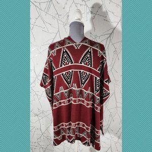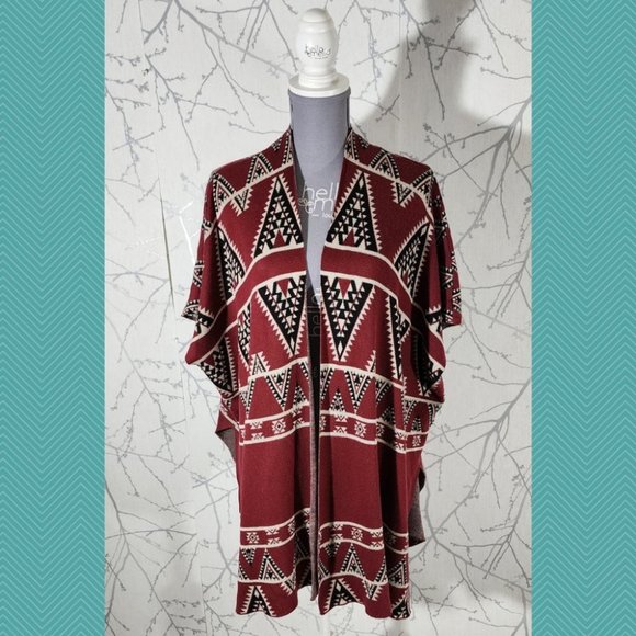 Tally Weijl Burgundy Aztec Printed Open Front Poncho Cardigan