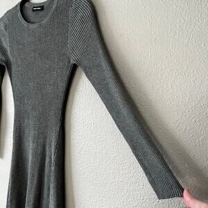 Tally Weijl Grey Ribbed Long Sleeve Fit Flare Crew Neck Womens Sweater Dress L