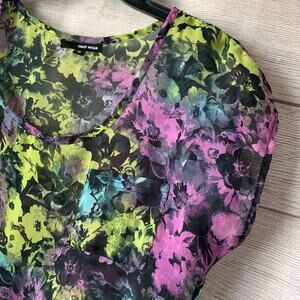 Tally Weijl Multi-Color Floral Blouse Tie Bottom Neon Retro Size 36