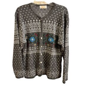 Tally-Ho Acrylic Fair Isle Floral Cardigan Sweater Button Down Vtg Size Large Co