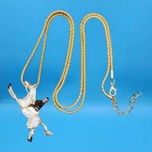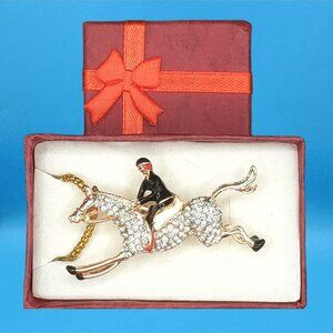 Elegant equestrian pendant/brooch with a 30" chain, perfect for horse lovers and collectors. Ideal for holiday gifts or Secret Santa exchanges. Comes gift boxed.