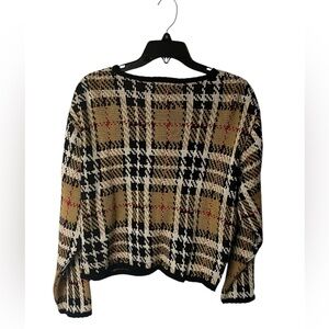 Tally-Ho Tan plaid button down cardigan sweater size M