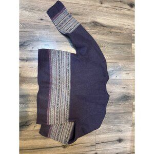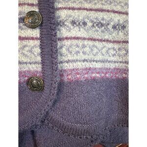 Tally-Ho Womens Wool Sweater Cardigan PL Purple Fair Isle Pattern Purple Gray
