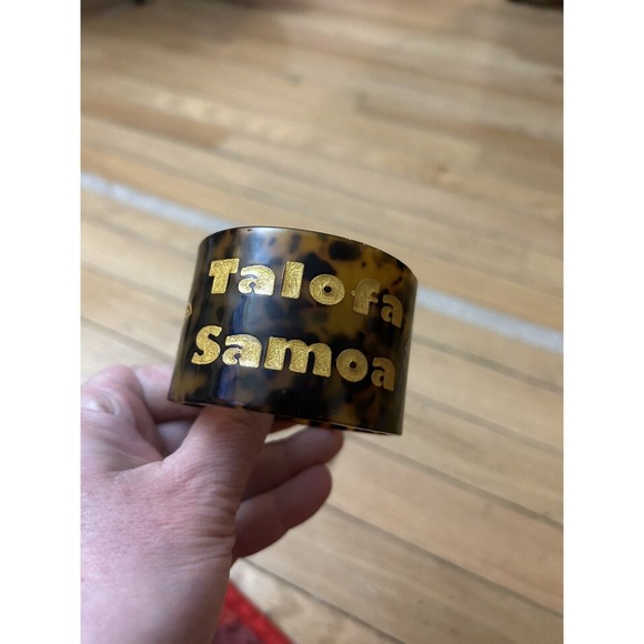 The bangle's unique style and material make it a must-have for any fashion-forward individual. It is the perfect accessory to wear to any occasion and is sure to turn heads wherever you go. The item is sourced from Samoa, adding to its appeal and making it an excellent addition to any collection.